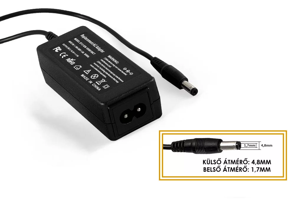 Kerek Csatlakozó méretei, amit a laptopba dugsz: kívül 4,8mm, belül 1,7mm!