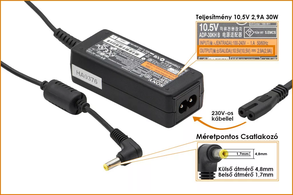 Sony 10.5V 2.9A 30W gyári új netbook töltő (VGP-AC10V5, VGP-AC10V2)