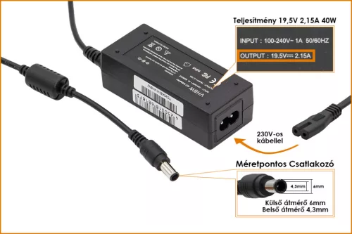 Sony 19.5V 2.15A 40W helyettesítő új netbook töltő (PCGA-ACX1, AC19V2)