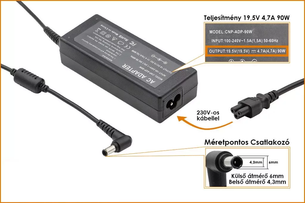 Sony VGP-AC19V32 19.5V 4.7A 90W használt helyettesítő töltő