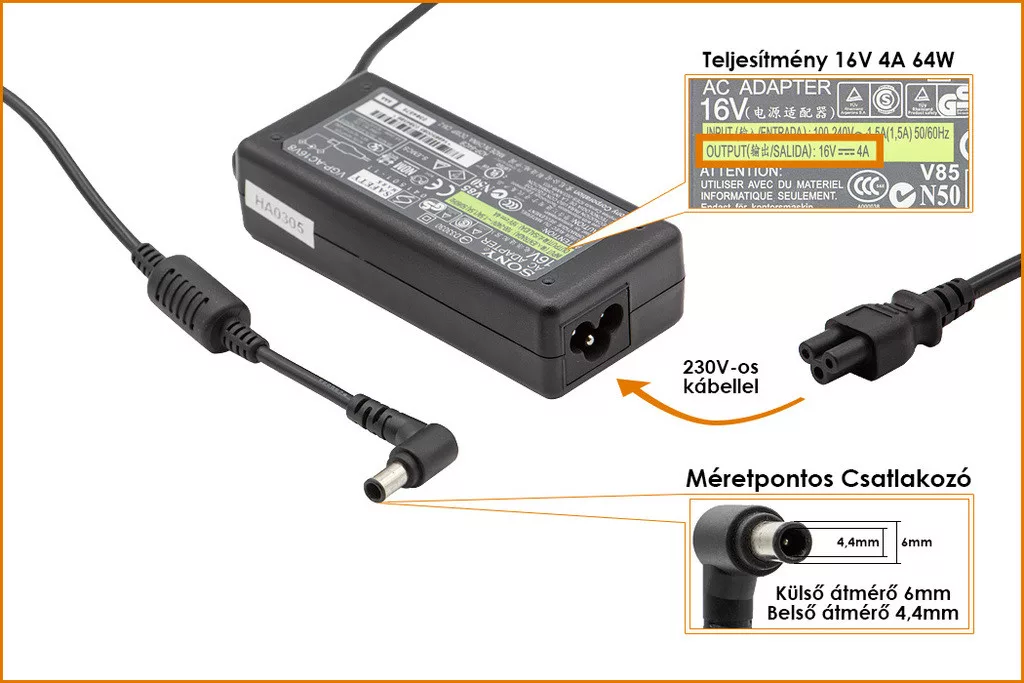 Sony Vaio, Fujitsu-Siemens LifeBook 16V 4A 65W gyári új töltő (VGP-AC16V8, PCGA-AC16V7)