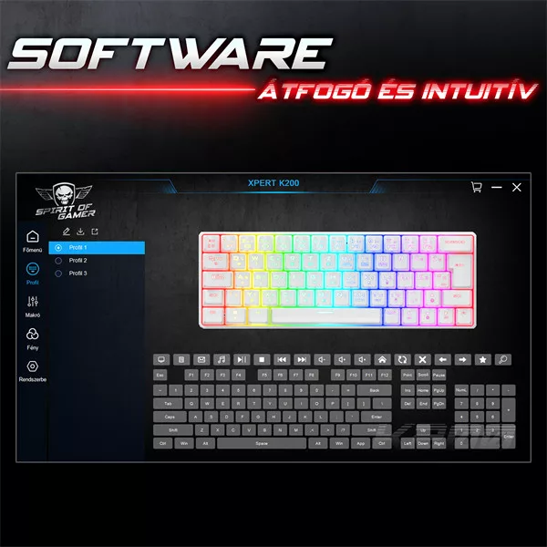 Spirit of Gamer Billentyűzet Mechanikus - XPERT K200 White  (TKL, SOG red, RGB LED,USB, anti-ghosting, fehér, magyar)