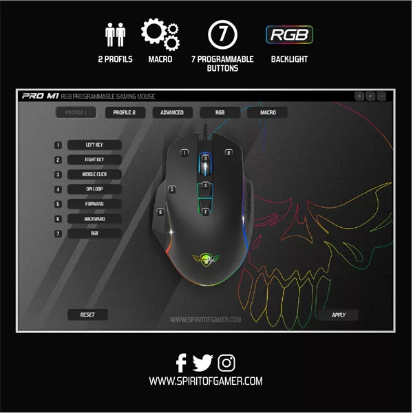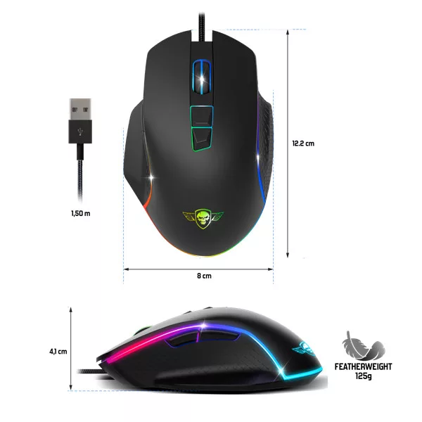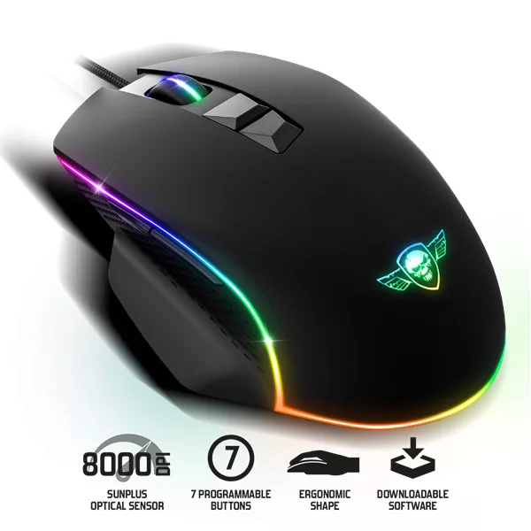 Spirit of Gamer Egér - PRO-M1 (Optikai, 8000DPI, 7 programozható gomb, harisnyázott kábel, fekete)