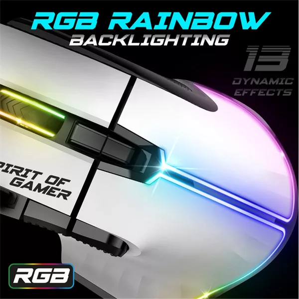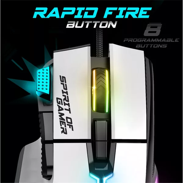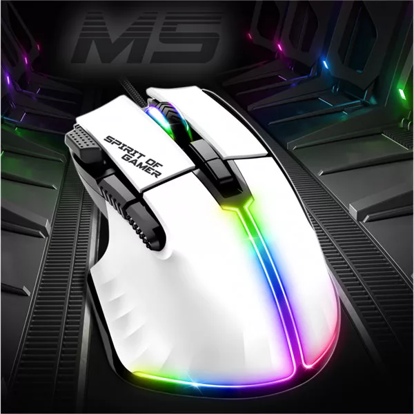Spirit of Gamer Egér - PRO-M5 Arctic (Optikai, 12800DPI, 1000Hz, 8 gomb, harisnyázott kábel, fehér)