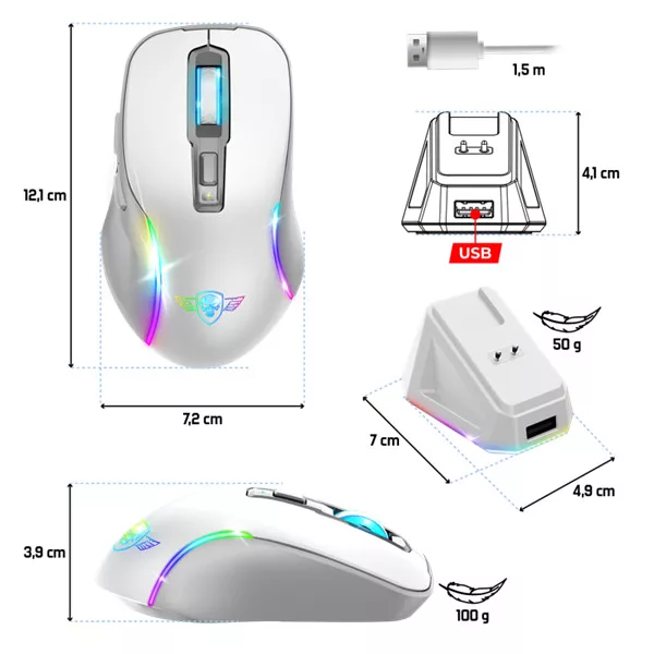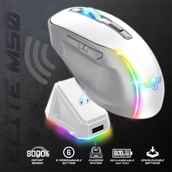 Spirit of Gamer Egér Vezeték nélküli - ELITE-M50 White (Optikai, 8000DPI, 1000Hz, 6 programozható gomb, RGB, fehér)
