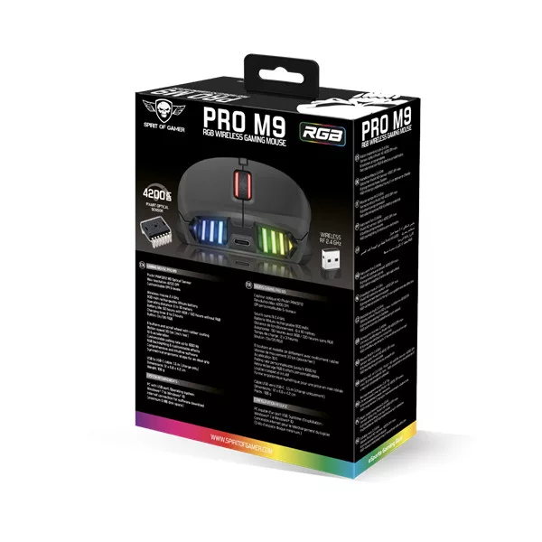 Spirit of Gamer Egér Vezeték nélküli - PRO-M9 (Optikai, 4200DPI, 6 programozható gomb, Max.: 10m, fekete)