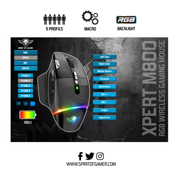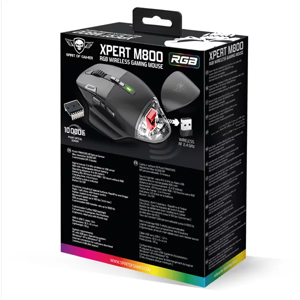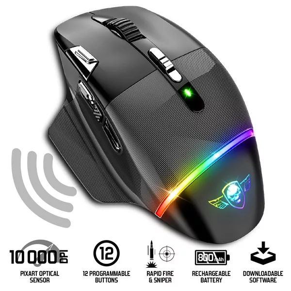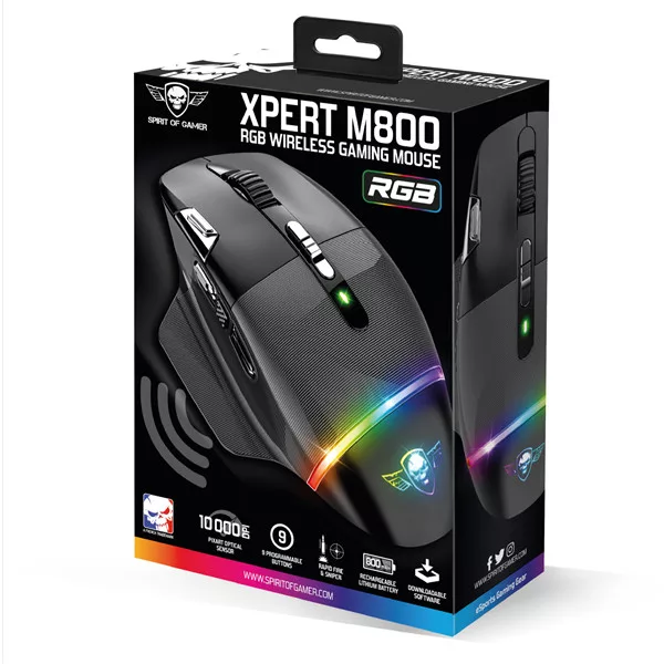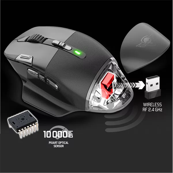 Spirit of Gamer Egér Vezeték nélküli - XPERT-M800 (Optikai, 10 000DPI, 12 programozható gomb, Max.: 10m, fekete)