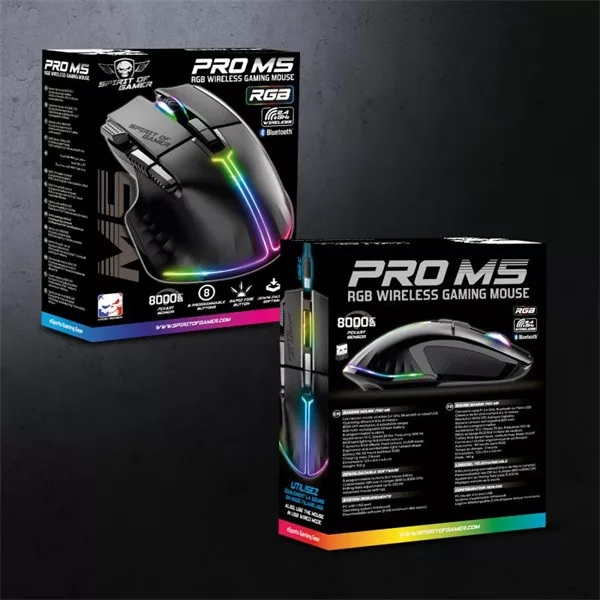 Spirit of Gamer Egér vezeték nélküli - PRO-M5 Wireless (Optikai, 8000DPI, 8 gomb, fekete)