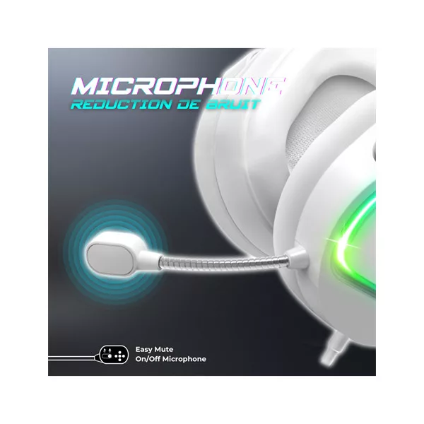 Spirit of Gamer Fejhallgató - PRO-H6 RGB White (MultiPlatform, mikrofon, 3.5mm jack, hangerőszabályzó, 2m kábel, fehér)
