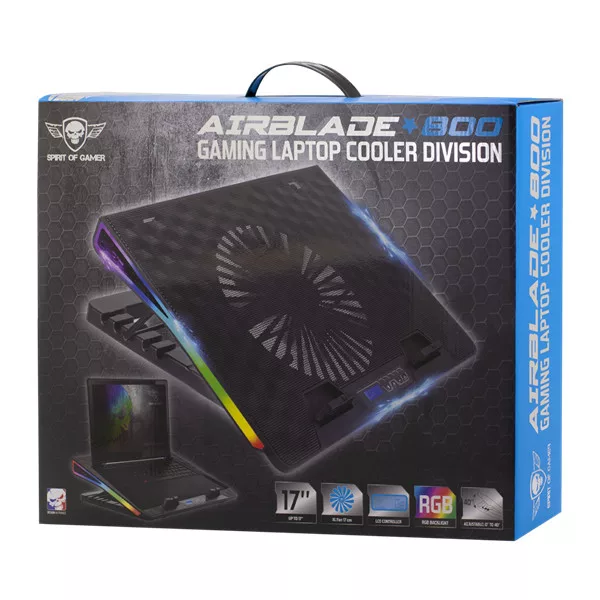 Spirit of Gamer Notebook Hűtőpad 17"-ig - AIRBLADE 800 RGB (26dB; max. 79 m3/h; 2x17cm, RGB LED, 2xUSB2.0)