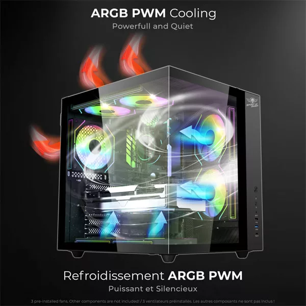 Spirit of Gamer Számítógépház - BANDIT GT (fekete, ablakos, 3x12cm ventilátor, alsó táp, ATX, 1x USB-C, 3x USB-A)