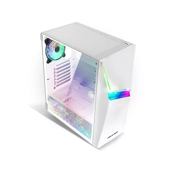 Spirit of Gamer Számítógépház - CLONE 4 White (fekete, ablakos, 2x12cm ventilátor, alsó táp, ATX, 1xUSB3.0, 2xUSB2.0)