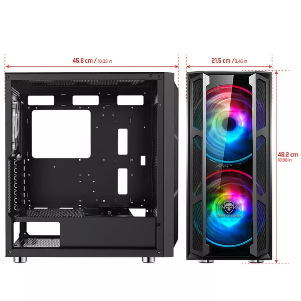 Spirit of Gamer Számítógépház - GHOST 5 RGB (fekete, ablakos, 2x20cm, 2x12cm ventilátor, ATX, mATX, 2xUSB3.0, 1xUSB2.0)