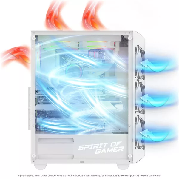 Spirit of Gamer Számítógépház - REBEL NX White (fekete, ablakos, 4x12cm ventilátor, alsó táp, ATX, 1xUSB3.0, 2xUSB2.0)