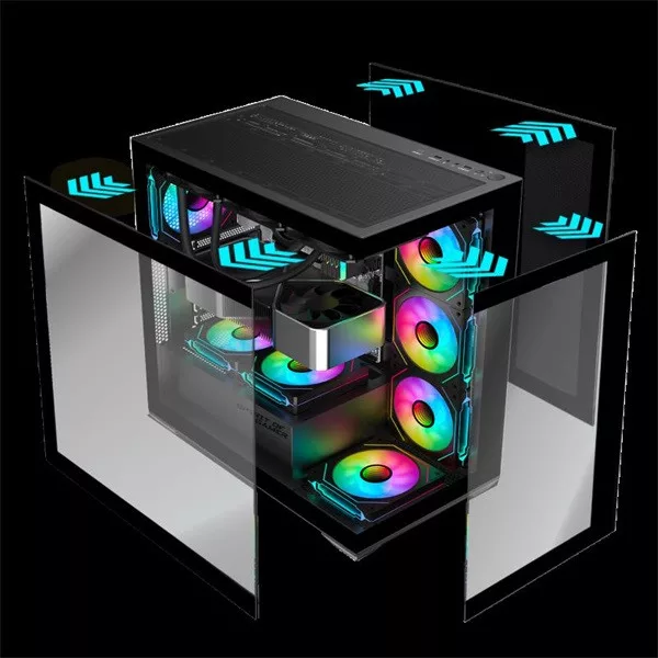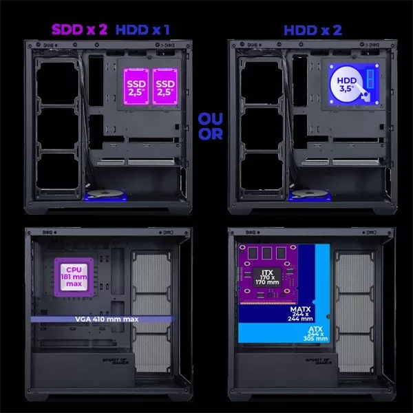 Spirit of Gamer Számítógépház - SPARK Black (fekete, ablakos, 6x12cm ventilátor, alsó táp,  ATX, 2xUSB3.0, 1xUSB-C)