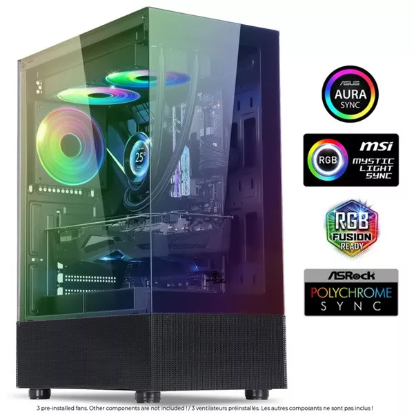 Spirit of Gamer Számítógépház - SPECTRA Black (fekete, ablakos, 3x12cm ventilátor, alsó táp,  ATX, 1xUSB3.0, 2xUSB2.0)