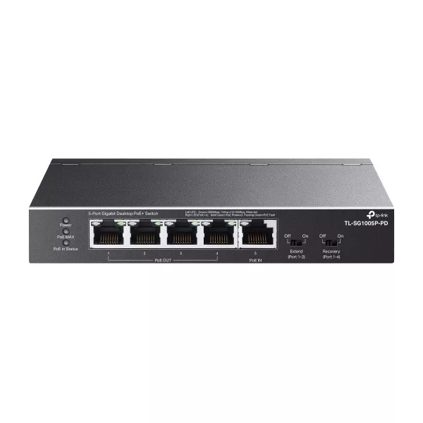TP-Link Switch  PoE - TL-SG1005P-PD (5port 1Gbps; 1port PoE++ be és 4port PoE+ kimenet; max 66W)