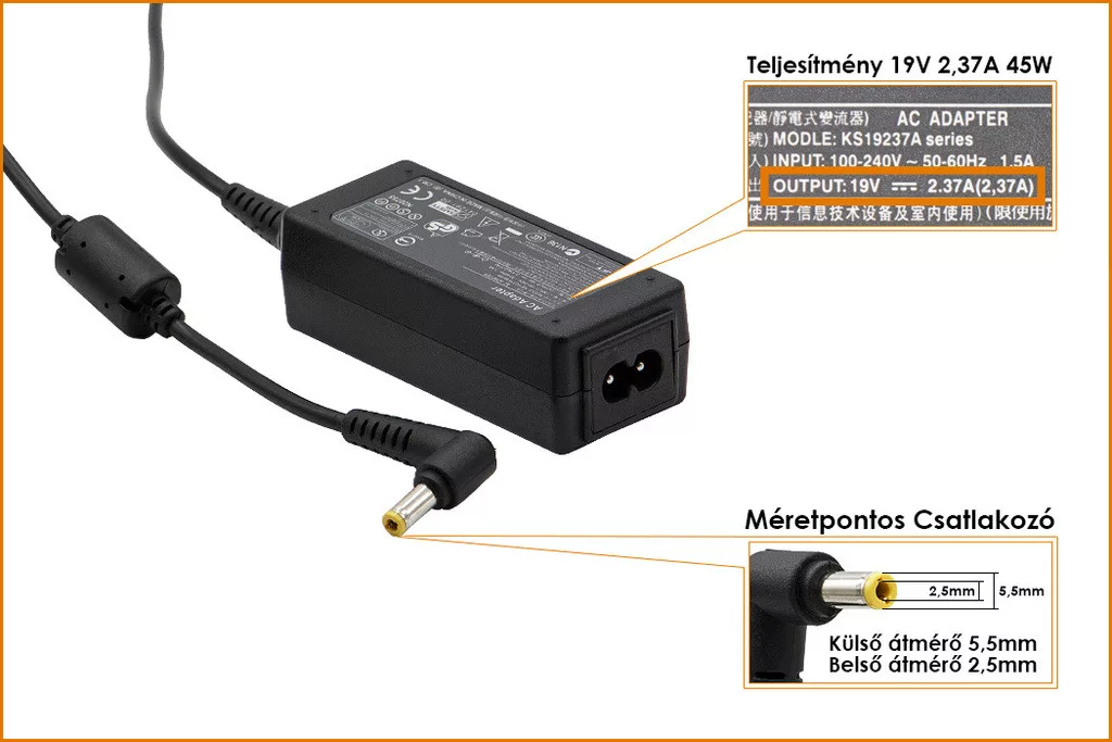 Gyárival megegyező minőségű helyettesítő laptop töltő.