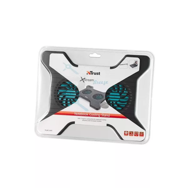 Trust Notebook Hűtő Pad - Xstream Breeze (állítható dőlésszög; USB-ről működő 2x ventilátor; fekete)