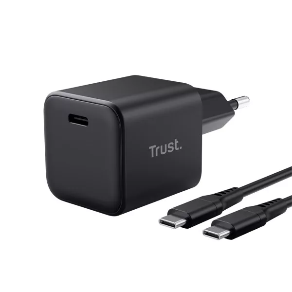 Trust Telefon töltő - Maxo Ultra-small (65W; USB-C; + 2m kábel; fekete)