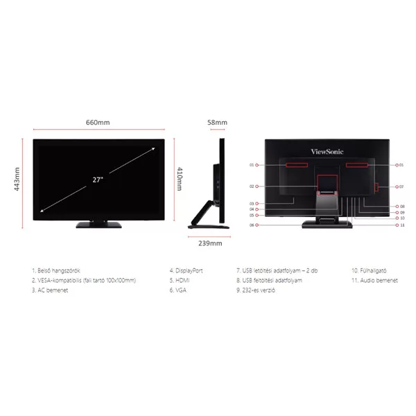 • Kijelző mérete (in.): 27 Látható terület (in.): 27