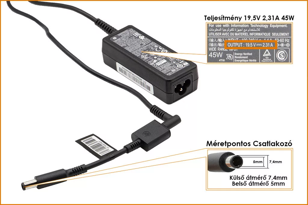Eredeti, Gyári 45 Wattos laptop töltő HP laptophoz.