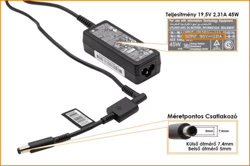 HP Compaq 19.5V 2.31A 45W center-pin, középső tüskés gyári új töltő (HSTNN-DA40)
