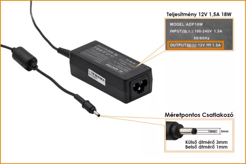 Acer Iconia Tab A100, A200, A500 12V 1.5A 18W helyettesítő új tablet töltő (PSA18R-120P, AP.0180P.002)