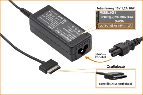 Asus EeePad Transformer TF101, TF201, SL101 15V 1.2A 18W helyettesítő új töltő