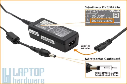 Toshiba Portege Z830, Satellite T230 19V 2.37A 45W használt töltő (PA3822U-1ACA)