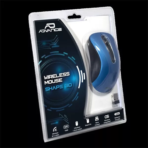 Advance Egér vezeték nélküli - SHAPE 3D (1600 DPI, 3 gomb, ergonomikus, kék)
