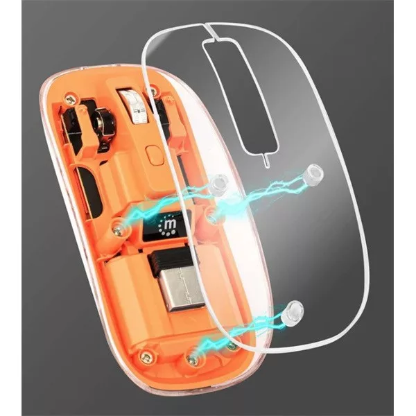 Manhattan Egér - Vezetéknélküli, RGB LED, átlátszó design, (Optikai, 1600dpi) Narancs