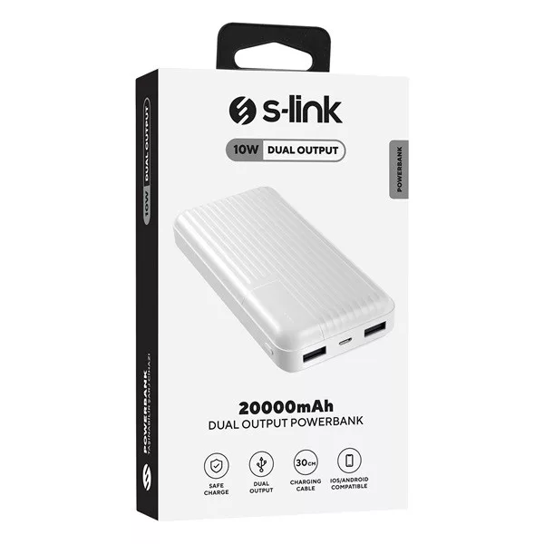 S-Link Powerbank - G201 20000mAh (2xUSB, Micro usb, led, fehér)